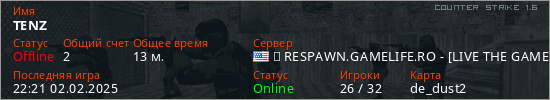 Играет на Counter Strike 1.6 сервере. Страна: СШАПервый раз замечен 19:16 31.01.2025