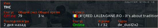 Играет на Counter Strike 1.6 сервере. Страна: РумынияПервый раз замечен 04:07 27.05.2024