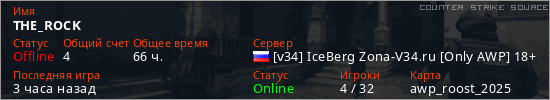 Играет на Counter Strike Source сервере. Страна: РоссияПервый раз замечен 17:21 22.10.2025