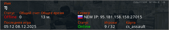 Последний раз был в сети 05:12 08.12.2025 Игрок с таким ником замечен на 27 серверах
