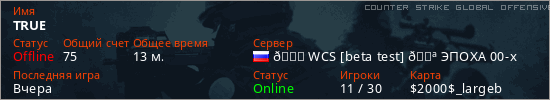 Играет на Counter Strike Global Offensive сервере. Страна: РоссияПервый раз замечен 00:01 06.03.2026