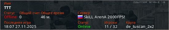 Последний раз был в сети 18:07 27.11.2025 Игрок с таким ником замечен на 34 серверах
