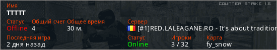 Играет на Counter Strike 1.6 сервере. Страна: РумынияПервый раз замечен 00:17 18.01.2026