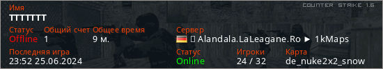 Играет на Counter Strike 1.6 сервере. Страна: ГерманияПервый раз замечен 11:21 19.06.2024