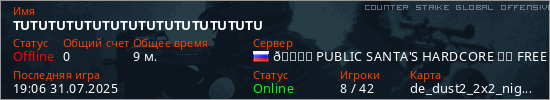 Играет на Counter Strike Global Offensive сервере. Страна: РоссияПервый раз замечен 18:45 31.07.2025