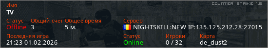 Играет на Counter Strike 1.6 сервере. Страна: РумынияПервый раз замечен 21:17 01.02.2026