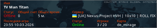 Играет на Counter Strike Global Offensive сервере. Страна: УкраинаПервый раз замечен 23:42 10.03.2026