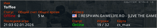 Играет на Counter Strike 1.6 сервере. Страна: СШАПервый раз замечен 21:01 02.01.2026