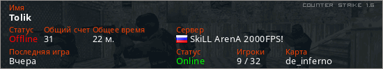 Последний раз был в сети Вчера Игрок с таким ником замечен на 26 серверах