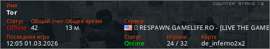 Играет на Counter Strike 1.6 сервере. Страна: СШАПервый раз замечен 13:31 28.02.2026