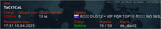 Играет на Counter Strike Global Offensive сервере. Страна: РоссияПервый раз замечен 15:04 10.04.2025