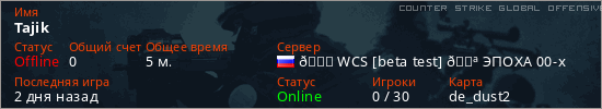 Играет на Counter Strike Global Offensive сервере. Страна: РоссияПервый раз замечен 13:51 05.03.2026