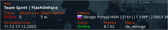 Играет на Counter Strike Global Offensive сервере. Страна: РоссияПервый раз замечен 10:53 17.12.2025
