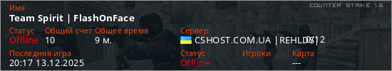 Играет на Counter Strike 1.6 сервере. Страна: УкраинаПервый раз замечен 20:00 13.12.2025