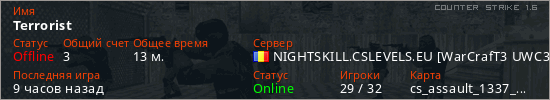 Последний раз был в сети 8 часов назад Игрок с таким ником замечен на 18 серверах