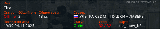 Играет на Counter Strike 1.6 сервере. Страна: РоссияПервый раз замечен 10:56 26.07.2025
