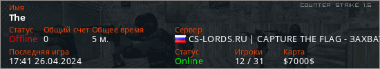 Играет на Counter Strike 1.6 сервере. Страна: РоссияПервый раз замечен 17:39 26.04.2024