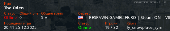 Играет на Counter Strike 1.6 сервере. Страна: СШАПервый раз замечен 20:39 25.12.2025