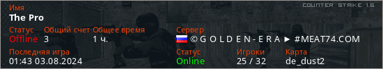 Играет на Counter Strike 1.6 сервере. Страна: РоссияПервый раз замечен 22:42 05.05.2024