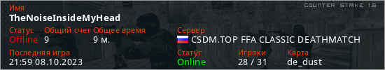 Играет на Counter Strike 1.6 сервере. Страна: РоссияПервый раз замечен 14:22 14.08.2023