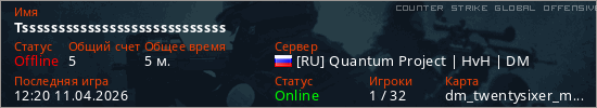 Играет на Counter Strike Global Offensive сервере. Страна: РоссияПервый раз замечен 11:55 11.04.2026