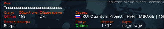 Играет на Counter Strike Global Offensive сервере. Страна: РоссияПервый раз замечен 12:23 15.03.2026