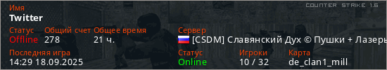 Последний раз был в сети 14:29 18.09.2025 Игрок с таким ником замечен на 6 серверах