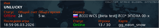 Играет на Counter Strike Global Offensive сервере. Страна: РоссияПервый раз замечен 18:19 06.03.2026