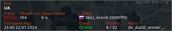 Играет на Counter Strike 1.6 сервере. Страна: РоссияПервый раз замечен 19:01 14.07.2022