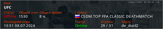 Играет на Counter Strike 1.6 сервере. Страна: РоссияПервый раз замечен 13:35 21.06.2022