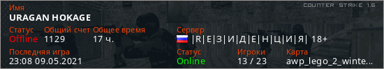 Играет на Counter Strike 1.6 сервере. Страна: РоссияПервый раз замечен 14:08 16.02.2020