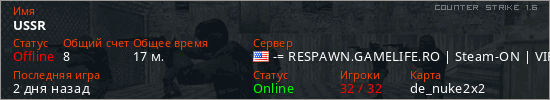 Играет на Counter Strike 1.6 сервере. Страна: СШАПервый раз замечен 20:13 01.07.2025