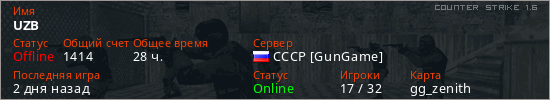 Играет на Counter Strike 1.6 сервере. Страна: РоссияПервый раз замечен 19:33 01.05.2023