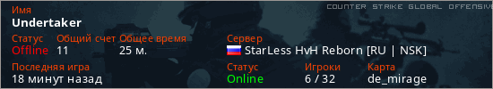 Играет на Counter Strike Global Offensive сервере. Страна: РоссияПервый раз замечен 20:41 26.02.2026
