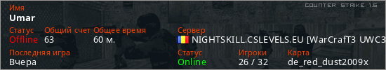 Последний раз был в сети Вчера Игрок с таким ником замечен на 27 серверах