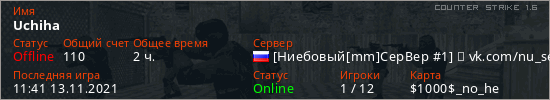 Последний раз был в сети 11:41 13.11.2021 Игрок с таким ником замечен на 23 серверах