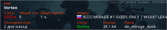 Играет на Counter Strike Global Offensive сервере. Страна: РоссияПервый раз замечен 12:54 04.02.2024