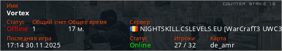Последний раз был в сети 17:14 30.11.2025 Игрок с таким ником замечен на 27 серверах