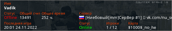 Последний раз был в сети 20:01 24.11.2022 Игрок с таким ником замечен на 20 серверах