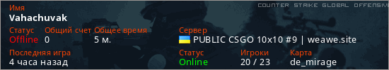 Играет на Counter Strike Global Offensive сервере. Страна: УкраинаПервый раз замечен 12:13 07.03.2026