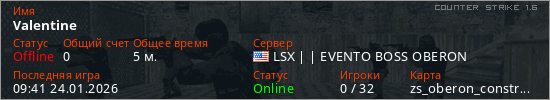 Играет на Counter Strike 1.6 сервере. Страна: СШАПервый раз замечен 09:35 24.01.2026
