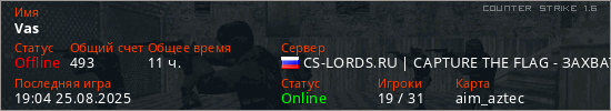 Играет на Counter Strike 1.6 сервере. Страна: РоссияПервый раз замечен 07:31 10.06.2021