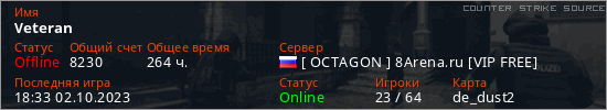 Играет на Counter Strike Source сервере. Страна: РоссияПервый раз замечен 12:35 03.06.2020