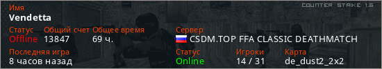 Последний раз был в сети 6 часов назад Игрок с таким ником замечен на 31 сервере