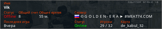 Играет на Counter Strike 1.6 сервере. Страна: РоссияПервый раз замечен 16:34 13.11.2023