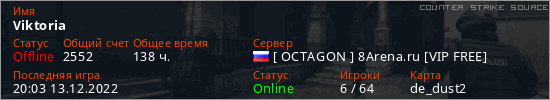 Играет на Counter Strike Source сервере. Страна: РоссияПервый раз замечен 14:48 08.06.2022