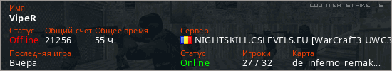 Последний раз был в сети Вчера Игрок с таким ником замечен на 7 серверах