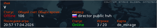 Играет на Counter Strike Global Offensive сервере. Страна: РоссияПервый раз замечен 19:41 02.04.2026