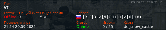 Играет на Counter Strike 1.6 сервере. Страна: РоссияПервый раз замечен 21:41 20.09.2025