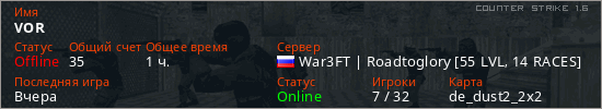 Последний раз был в сети Вчера Игрок с таким ником замечен на 29 серверах